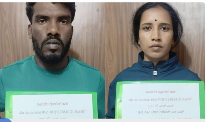 காதலன் மீது மோகம் கொண்ட மனைவி, தனது கணவரைக் கொலை செய்து, விபத்து போல் நடித்த வழக்கை சுலிபெலே போலீசார் கண்டுபிடித்துள்ளனர். ஜனவரி 24 ஆம் தேதி ஹோஸ்கோட் தாலுகாவின் சித்தெனஹள்ளி கிராமத்தில் புஷ்பா என்ற பெண்ணையும், அவரது காதலன் தேவராஜையும் போலீசார் கைது செய்துள்ளனர். புஷ்பா தனது காதலன் தேவராஜுக்காக தனது கணவர் அசோக்கை (40) கொலை செய்ய சதி செய்திருந்தார். .
