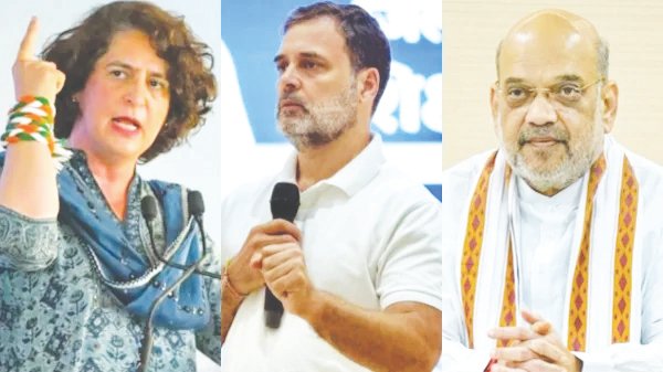 அவையின் எதிர்க்கட்சி தலைவர் இப்படித்தான் நடந்து கொள்வதா? நாடு இதை அனைத்தையும் கவனித்து கொண்டு இருக்கிறது. உங்கள் கட்சியை மக்கள் மதிப்பிடுவார்கள். இந்த வார்த்தைகள் வெறும் உணர்வுகளை மட்டும் பிரதிபலிக்கவில்லை. அவையில் எப்படி பேசவேண்டும் என்ற கலையை இந்த அவையில் உள்ள உங்கள் சீனியர்களிடம் இருந்து கற்றுக்கொள்ளுங்கள். சீனியர்கள் யாரும் இல்லையென்றால், பிரியங்கா காந்தியும் சீனியர்தான். அவரிடம் இருந்து கற்றுக்கொள்ளுங்கள்” என்றார். முன்னதாக இந்த மசோதா மீதான விவாதத்தின் போது பிரியங்கா காந்தியின் பேச்சால் அமித்ஷா அவையில் குலுங்கி குலுங்கி சிரித்தார். பிரியங்கா காந்தி பேசும் போது, “நீங்கள் (அமித்ஷா) எல்லாரும் பிளான் பண்ணித்தான் வந்திருக்கிறீர்கள். இன்று சாணக்கியர் மட்டும் உயிரோடு இருந்திருந்தால், உங்கள் சாதுர்யத்தைப் பார்த்து அவரே ஷாக் ஆகியிருப்பார். தற்போது அமித்ஷா சிரிக்கிறார். நான் சொன்னதை ஒப்புக்கொள்கிறார்” என்று கூறினார். முன்னதாக ராகுல் காந்தியும் பிரியங்கா காந்தியின் உரையை சுட்டிக்காட்டி பேசியிருந்தார். ராகுல் காந்தி பேசுகையில், நான் இருபது ஆண்டுகளில் செய்ய முடியாததை 5 நிமிடத்தில் பிரியங்கா காந்தி செய்துவிட்டார் என்றார். இதனைக்கேட்ட அமித்ஷா அப்போதும் லேசாக சிரித்தார்.