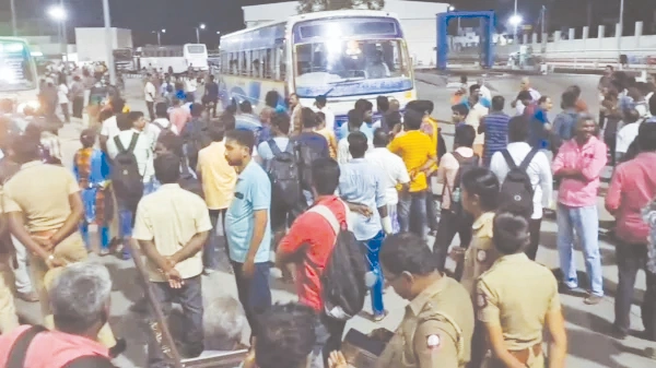 பேருந்துகள் சரிவர இயக்கப்படாததால் அவர்களின் காத்திருப்பு விடிய விடிய காத்திருந்தனர். இதனால் பயணிகள் ஆத்திரம் அடைந்து சாலையில் அமர்ந்து தர்ணா போராட்டம் நடத்தினர். இதனால் அங்கு பரபரப்பு எழுந்தது. சிறப்பு பேருந்துகள் இயக்கப்பட்டாலும் அவை மக்களுக்கு போதவில்லை என்றே தெரிகிறது. அது போல் பூந்தமல்லியில் இருந்து காஞ்சிபுரத்திற்கு பேருந்துகள் இல்லாததால் மக்கள் மறியல் செய்தனர். தீபாவளி, பொங்கலை காட்டிலும் இந்த முறை தேர்தலில் வாக்களிக்க மக்கள் கூட்டம் கூட்டமாக பேருந்து நிலையங்களில் காத்திருக்கிறார்கள். அது போல் பெங்களூர் தேசிய நெடுஞ்சாலையில் வழியெங்கும் உள்ள ஹோட்டல்களிலும் கூட்டம் அலைமோதியது.