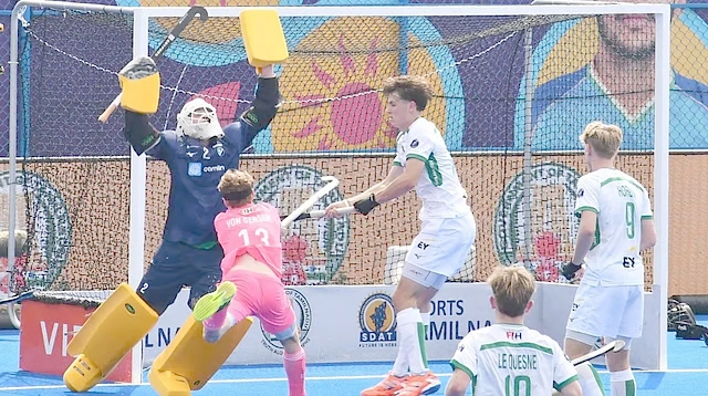 சென்னை, டிச. 2- 14-வது ஆடவருக்கான ஜூனியர் உலகக் கோப்பை ஹாக்கி தொடர் சென்னை மற்றும் மதுரையில் நடைபெற்று வருகிறது. இந்தத் தொடரின் 4-வது நாளான நேற்று மதுரையில் ‘ஏ’ பிரிவில் நடைபெற்ற லீக் ஆட்டத்தில் நடப்பு சாம்பியனான ஜெர்மனி, அயர்லாந்துடன் மோதியது. இதில் ஜெர்மனி 5-1 என்ற கோல் கணக்கில் வெற்றி பெற்றது. அந்த அணி சார்பில் ஜோனாஸ் ஜெர்சம் 2 கோல்கள் (4 மற்றும் 50-வது நிமிடங்கள்) அடித்து அசத்தினார். இந்த இரு கோல்களையும் அவர், பீல்டு கோலாக அடித்திருந்தார். கேப்டன் பால் கிளாண்டர் (34-வது நிமிடம், பெனால்டி கார்னர்), லூக்காஸ் கோஸல் (52-வது நிமிடம், பெனால்டி ஸ்டிரோக்),
