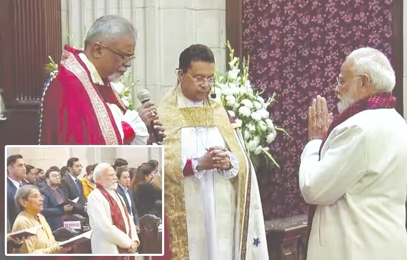 கதீட்ரல் தேவாலயத்தில் நடந்த கிறிஸ்துமஸ் பிரார்த்தனையில் பிரதமர் மோடி பங்கேற்றார்.