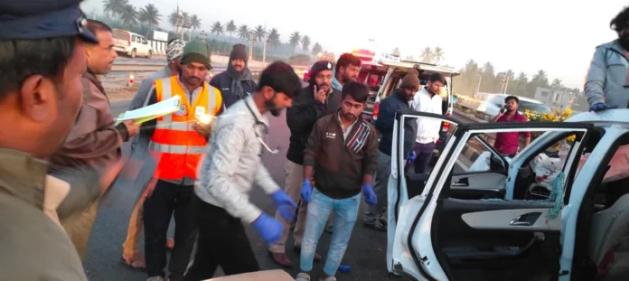 ஹொசகோட் தாலுகாவில் உள்ள எம் சத்யாவரம் கிராமத்தில் உள்ள புதிய நெடுஞ்சாலையில் அதிகாலை 4 மணியளவில் எக்ஸ்யூவி 700 காரில் பெங்களூர் நகரக் கல்லூரியைச் சேர்ந்த 6 பி.யு மாணவர்கள் அதிவேகமாக ஓட்டிச் சென்று கொண்டிருந்தனர், அப்போது கார் கட்டுப்பாட்டை இழந்தது. ஜெகன் என்பவர் வந்த பைக் மீது மோதியது. இதைத்தொடர்ந்து