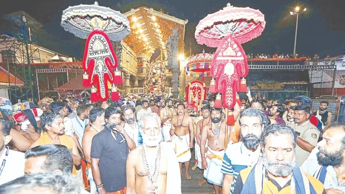 இதுகுறித்து தேவசம் போர்டு அதிகாரிகள் கூறும்போது, ‘ஐயப்பனின் பரிவார தெய்வங்கள் சரங்குத்தியில் லட்சக்கணக்கான பக்தர்களை முறைப்படுத்தி, சந்நிதிக்கு அனுப்புவதாக ஐதீகம். தற்போது விழா நிறைவடைந்ததால், அந்த பூதகணங்களை சிறப்பிக்கும் வகையில் அவர்களை மீண்டும் சந்நிதிக்கு ஐயப்பன் அழைத்து வருவதற்கான ஊர்வலம்தான் இது.