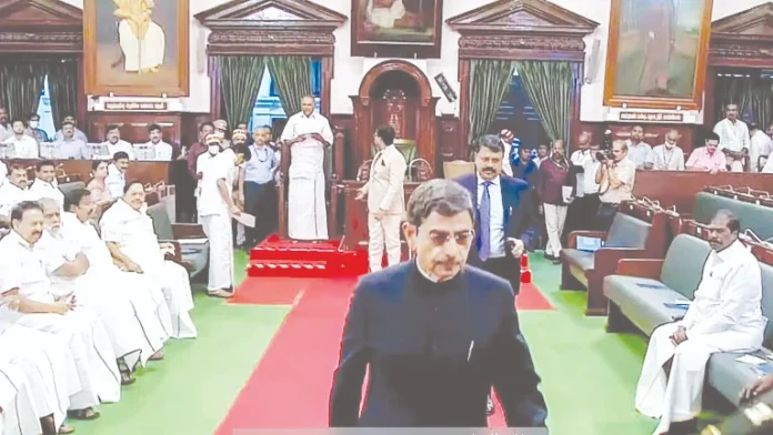 தேசிய கீதம் அவமதிக்கப்பட்டதாகக் கூறி ஆளுநர் ரவி வெளிநடப்பு செய்தார்.