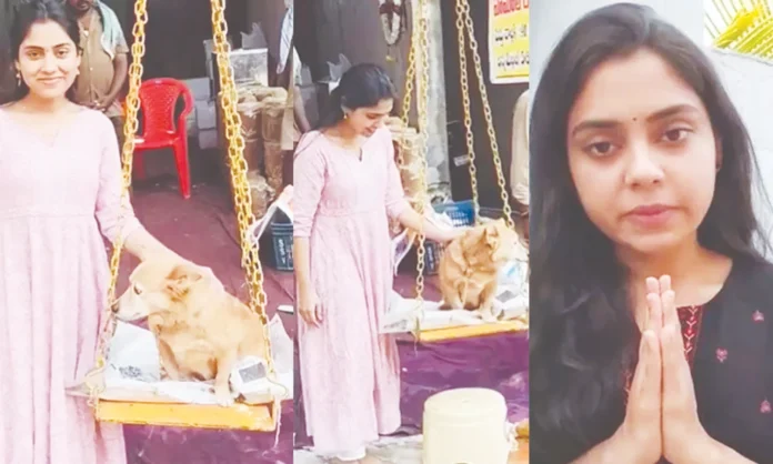 அப்போது அவர் செலுத்திய காணிக்கை தற்போது பெரும் சர்ச்சையை ஏற்படுத்தியுள்ளது. இதுதொடர்பான வீடியோ சமூக வலைதளங்களில் வைரலாகி வருகிறது. அந்த வீடியோவில், ஒரு துலாபாரம் தராசில் நடிகை தனது வளர்ப்பு நாயை அமர்த்தி, மறுபுறம் வெல்லத்தை வைத்து காணிக்கை செலுத்தியவாறு காட்சி பதிவாகியுள்ளது. இந்த செயல் மூலம் பழங்குடியின மக்கள் தேவதைகளாக வழிபடும் சம்மக்கா சாரலம்மாவை நடிகை டீனா ஸ்ராவ்யா, அவமதித்து விட்டதாக கூறி சமூக வலைதளங்களில் பக்தர்கள் அவரை விமர்சனம் செய்தனர். இதனை தொடர்ந்து சமூக வலைத்தளத்தில் ஸ்ராவ்யா விளக்கம் அளித்தார். இதுதொடர்பாக அவர் வெளியிட்டுள்ள வீடியோவில், தனது செல்ல நாய்