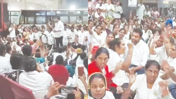 தமிழகம் முழுவதும் தொகுப்பூதியத்தில் பணிபுரியும் 1500 க்கும் மேற்பட்ட செவிலியர்கள் நேற்று சென்னையில் போராட்டத்தில் ஈடுபட்டிருந்தனர். இந்நிலையில் சென்னை கிளாம்பாக்கம் பேருந்து நிலையத்தில், நேற்று நள்ளிரவில் 700 க்கும் மேற்பட்ட செவிலியர்கள் திடீர் ஆர்ப்பாட்டத்தில் ஈடுபட்டிருந்தனர். இந்த ஆர்ப்பாட்டத்திற்கு தமிழக வெற்றி கழகத்தின் பொதுச்செயலாளர் ஆதவ் அர்ஜுனா நேரில் சென்று ஆதரவு தெரிவித்திருந்தார். போராட்டத்தில் ஈடுபட்டிருந்த செவிலியர்கள், திமுக அரசு தேர்தல் சமயத்தில் கொடுத்த வாக்குறுதியின் படி, தங்கள் பணிகளை நிரந்தரப்படுத்த வேண்டும் என்று வலியுறுத்தியுள்ளனர்.