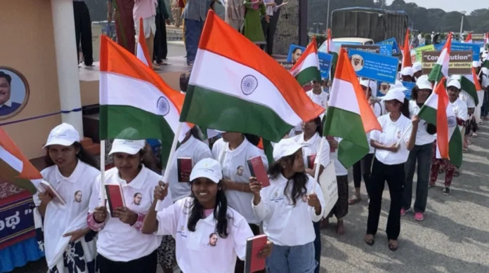 இந்த நிகழ்ச்சிக்காக, விதான சௌதாவின் கிழக்கு வாயிலில் உள்ள பிரமாண்டமான படிகளுக்கு முன்னால் தொடங்கிய முதல் பாத யாத்திரையை சமூக நலத்துறை அமைச்சர் மகாதேவப்பா கொடியசைத்து தொடங்கி வைத்தார். நூற்றுக்கணக்கான மாணவர்கள், இளைஞர்கள் மற்றும் பெண்கள், தேசியக் கொடியை ஏந்தி, அரசியலமைப்பின் நகல்களைக் காட்டி, விதான சௌதாவிலிருந்து அம்பேத்கர் பவனுக்கு அணிவகுத்துச் சென்றனர்.