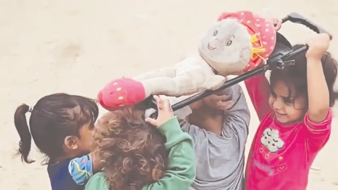 இஸ்ரேல் தாக்குதலால் கடுமையாக பாதிக்கப்பட்டுள்ள காசா நகரில் வாழும் மழலைகள் பொம்மைக்கு இறுதிச் சடங்கு செய்வதுபோல் விளையாடிய வீடியோ இப்போது உலகளவில் சமூக வலைதளங்களில் பரவி கவனம் பெற்றுள்ளது.
