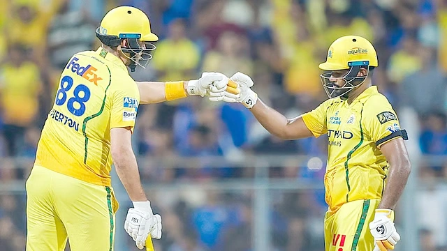 நூர் அகமது மற்றும் ஜேமி ஓவர்டன் தலா 2 விக்கெட்டுகளை வீழ்த்தினர். இறுதியில் மும்பை அணி 19 ஓவர்களில் 104 ரன்களுக்கு அனைத்து விக்கெட்டுகளையும் இழந்து படுதோல்வியைச் சந்தித்தது. இந்த அபார வெற்றியின் மூலம் சென்னை சூப்பர் கிங்ஸ் அணி தனது ரன் ரேட்டைப் பெருமளவு உயர்த்தியுள்ளதுடன், புள்ளிப்பட்டியலில் ஐந்தாவது இடத்துக்கு முன்னேறியுள்ளது. ஆட்டநாயகனாக சஞ்சு சாம்சன் தேர்வு செய்யப்பட்டார்.
