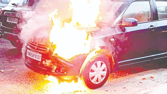 அதிர்​ஷ்ட​வச​மாக கார் நிறுத்​தப்​பட்​டிருந்த போது தீ விபத்து ஏற்​பட்​ட​தால் பெரும் உயிர்ச் சேதம் தவிர்க்​கப்​பட்​டது. காரில் ஏற்​பட்ட மின் கசிவு காரண​மாகத் தீ விபத்து ஏற்​பட்​டதா அல்​லது வேறு ஏதேனும் காரணமா என்​பது குறித்​துக் காவல்​துறை​யினர் தீவிர விசா​ரணை மேற்​கொண்டு வரு​கின்​றனர்.